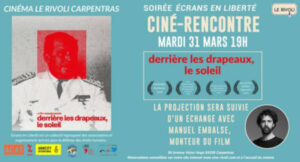 Dans le cadre d’une soirée du collectif « Écrans en Liberté », nous avons le plaisir de vous proposer une projection unique du film documentaire multi-primé « DERRIÈRE LES DRAPEAUX LE SOLEIL » de Juanjo Pereira, le MARDI 31 MARS à 19h. (Durée : 1h31)